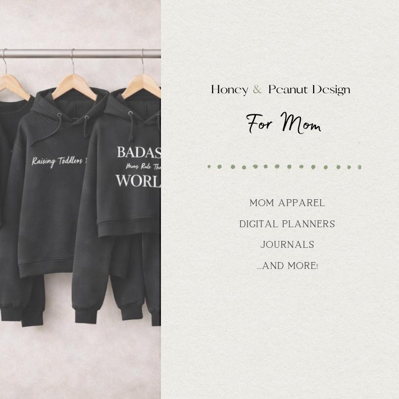 Honey & Peanut Design is a modern motherhood brand rooted in real life—where the beautiful, messy, and meaningful moments all belong. Blending a soft boho aesthetic with an honest, alternative edge, we create products that help moms announce, celebrate, and remember every stage—from pregnancy to childhood and beyond. Because motherhood isn’t perfect—and your memories don’t have to be either.