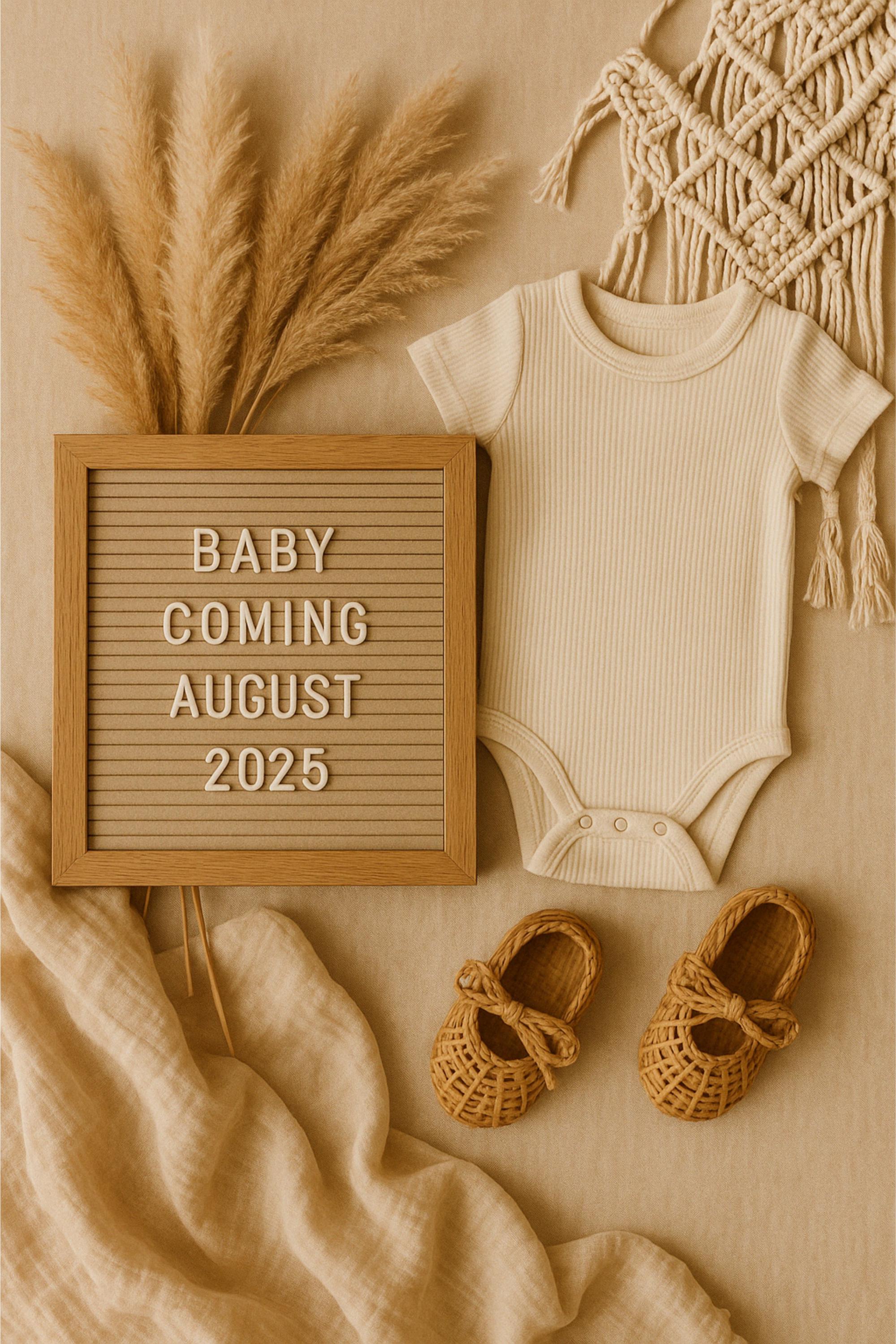 Bring calm, warmth, and intention to your big news with the Boho Dreams digital pregnancy announcement template. Styled with soft neutral tones, pampas grass, and woven textures, this cozy flat-lay scene captures the beauty of nature and minimalism. Perfect for lovers of organic style, slow living, and intentional design, it's an elegant way to announce your baby's upcoming arrival.
