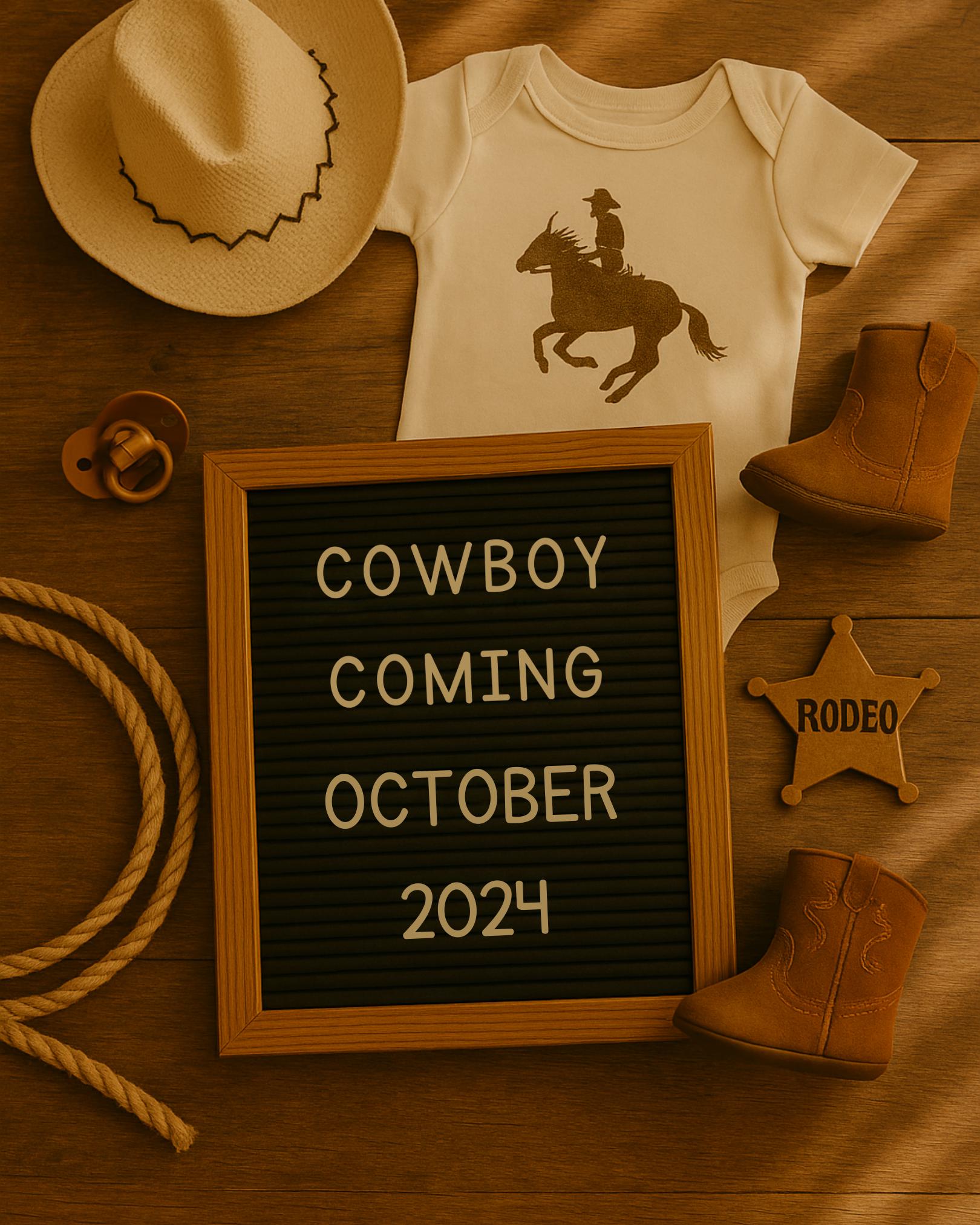 🤠 Little Buckaroo – Rodeo-Themed Pregnancy Announcement Template 🍼