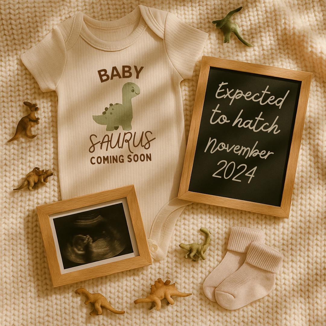 Perfect for parents-to-be who love dinosaurs, warm aesthetics, and creative reveals, Expected to Hatch is a dino-mite way to make your baby news roar with joy. 🦕💛