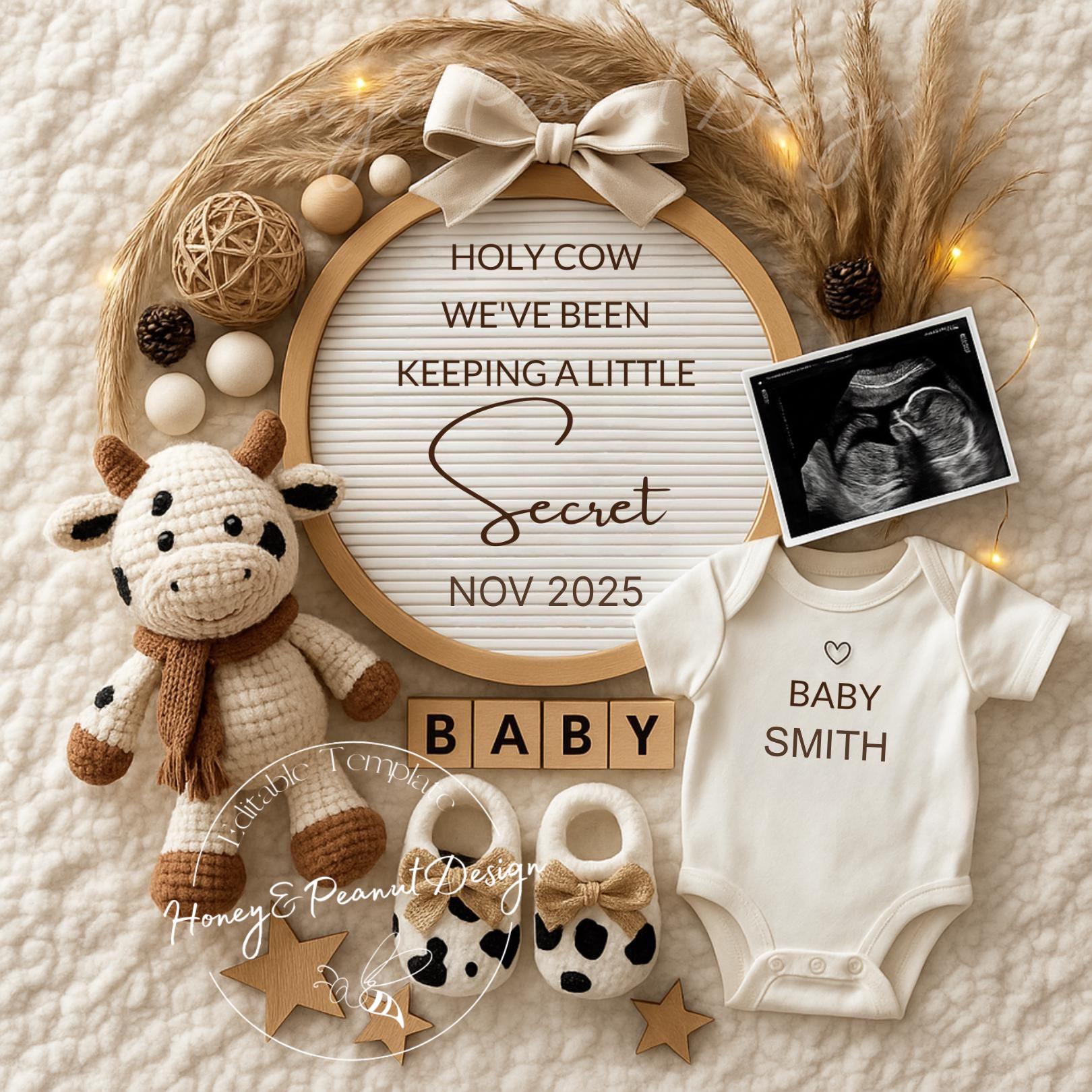 🐄 Little Moo Arriving Soon – Cow-Themed Pregnancy Announcement Template