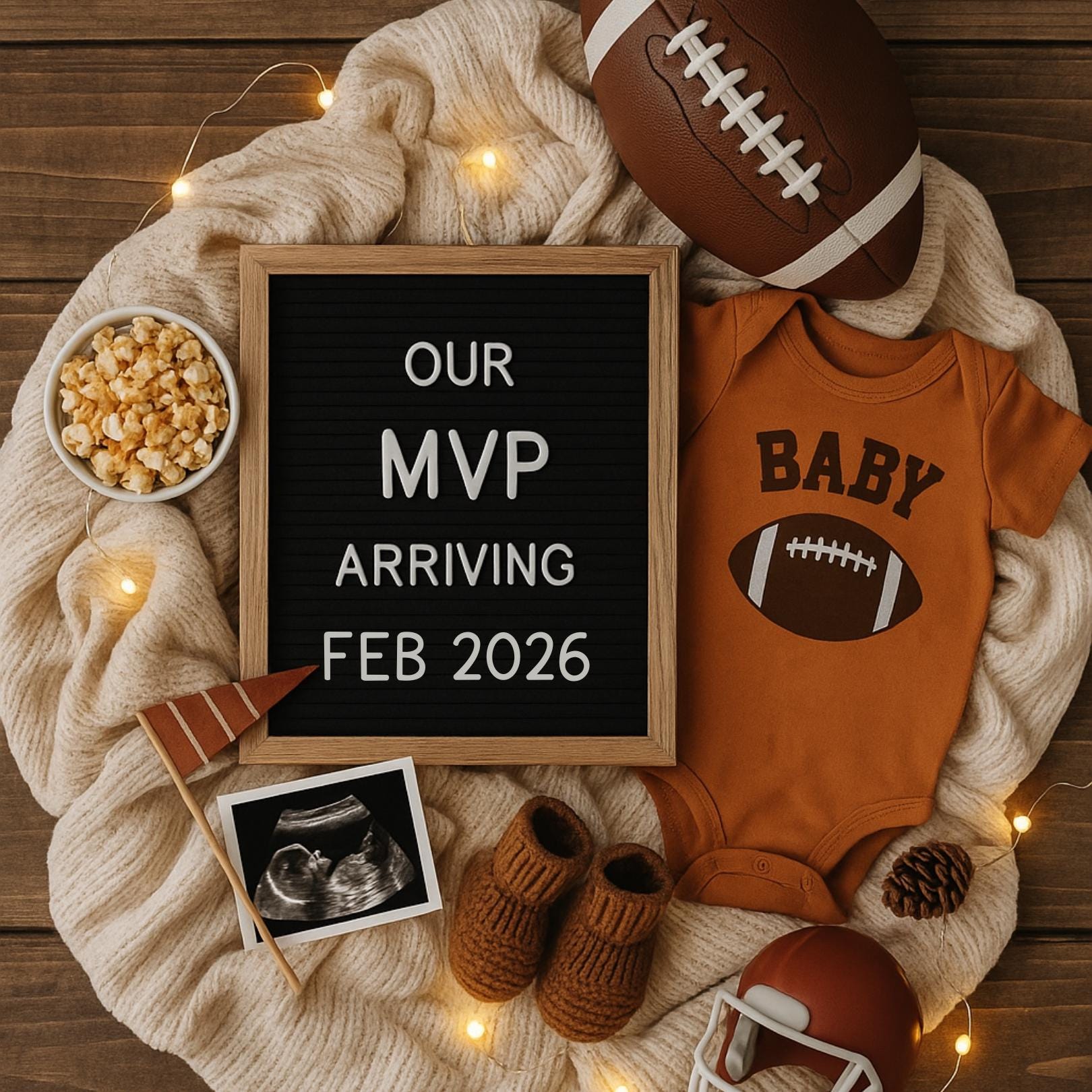 Celebrate your growing team with this adorable Fall Football-Themed Pregnancy Announcement from our Honey & Peanut collection! Whether you’re announcing your newest draft pick on Instagram or sharing with friends and family, this cozy, football-inspired design is the perfect way to say, “We’re expecting!”