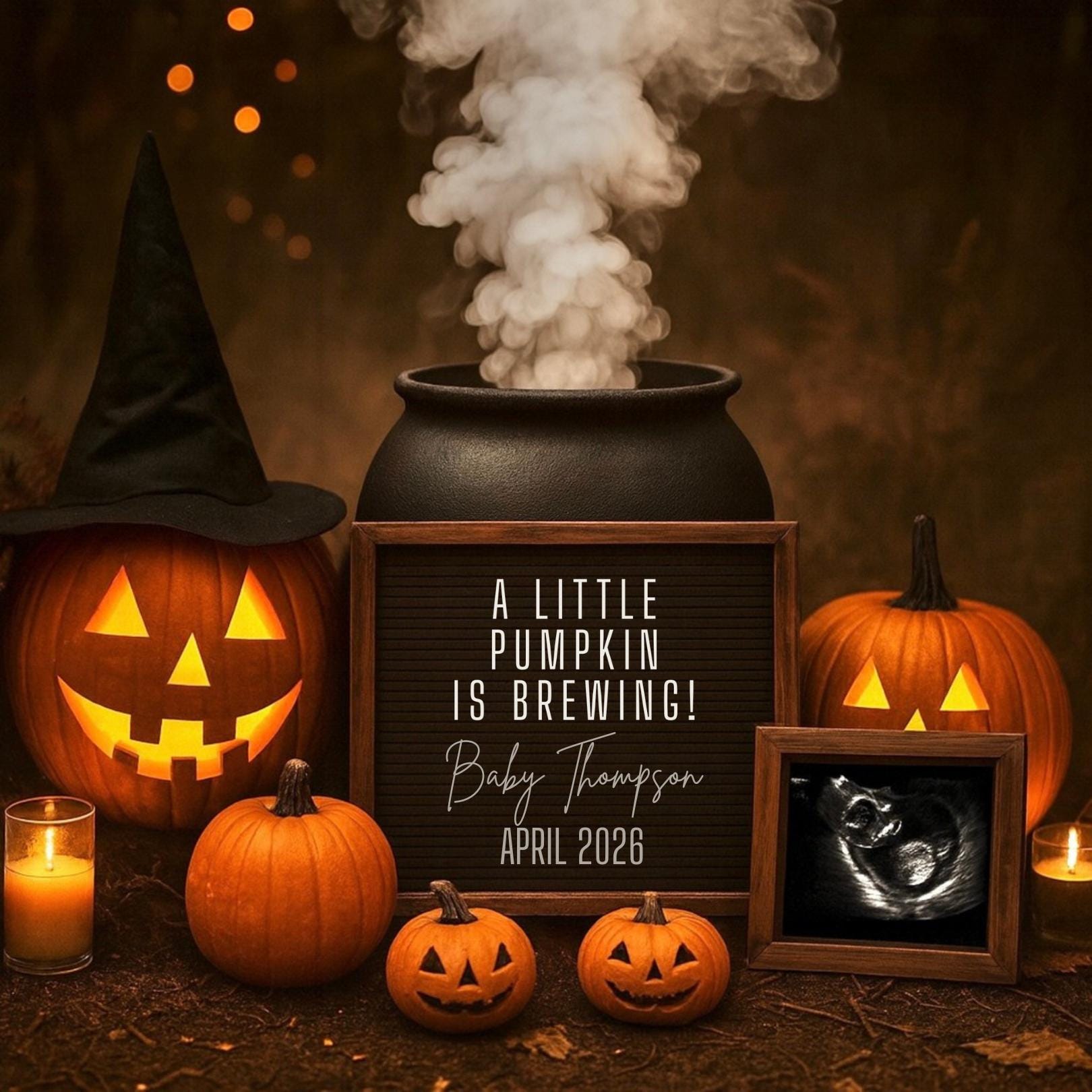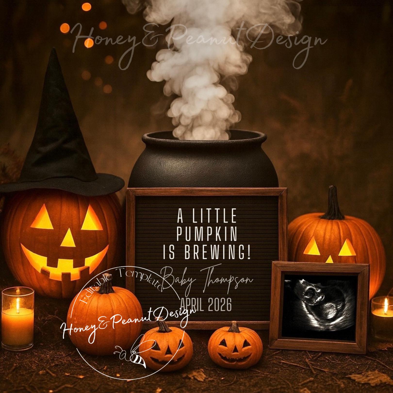 🕸️ Witchy Pumpkin Pregnancy Announcement Template 🎃