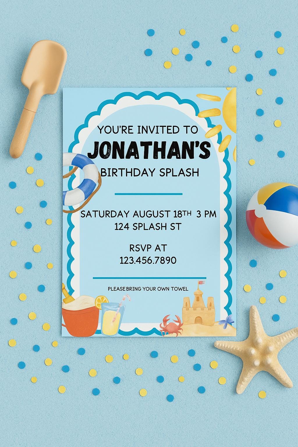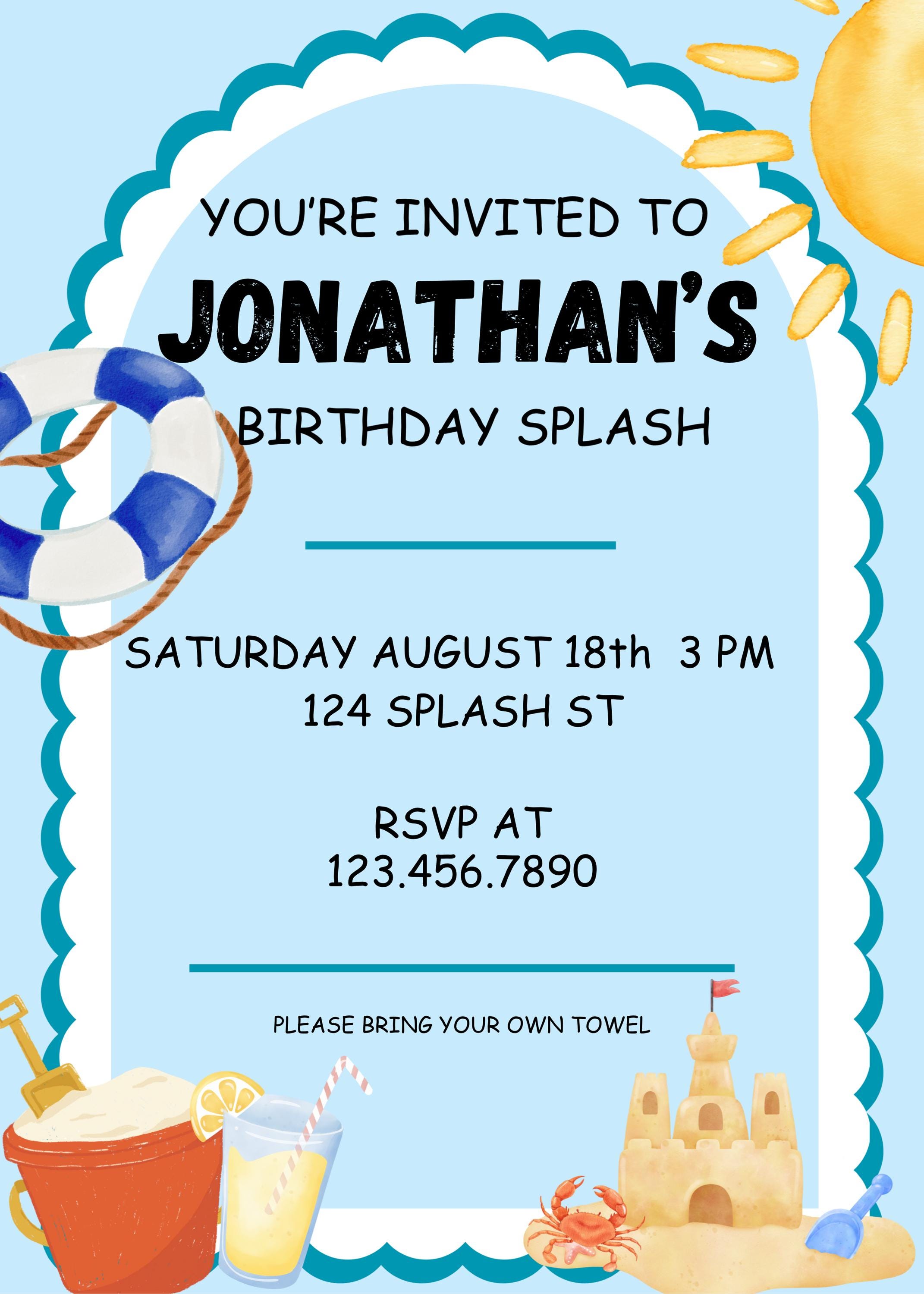 Make a splash with this cheerful Pool Party Birthday Invitation! Perfect for summer birthdays, beach bashes, or backyard pool parties, this bright and playful design sets the tone for a fun-filled celebration under the sun.