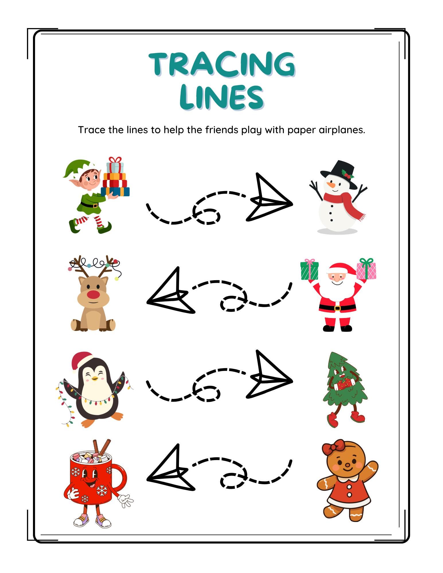 This 100-page printable activity book is packed with festive fun and educational activities for kids â perfect for the holidays! With mazes, connect-the-dots, matching games, coloring pages, and more, your child will love every moment of this merry learning adventure.