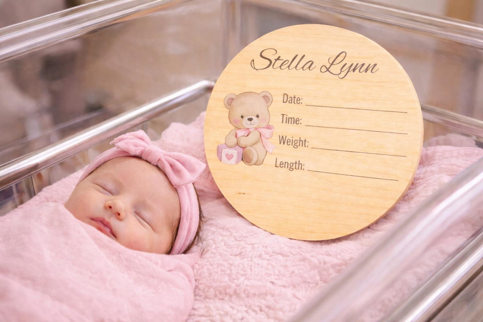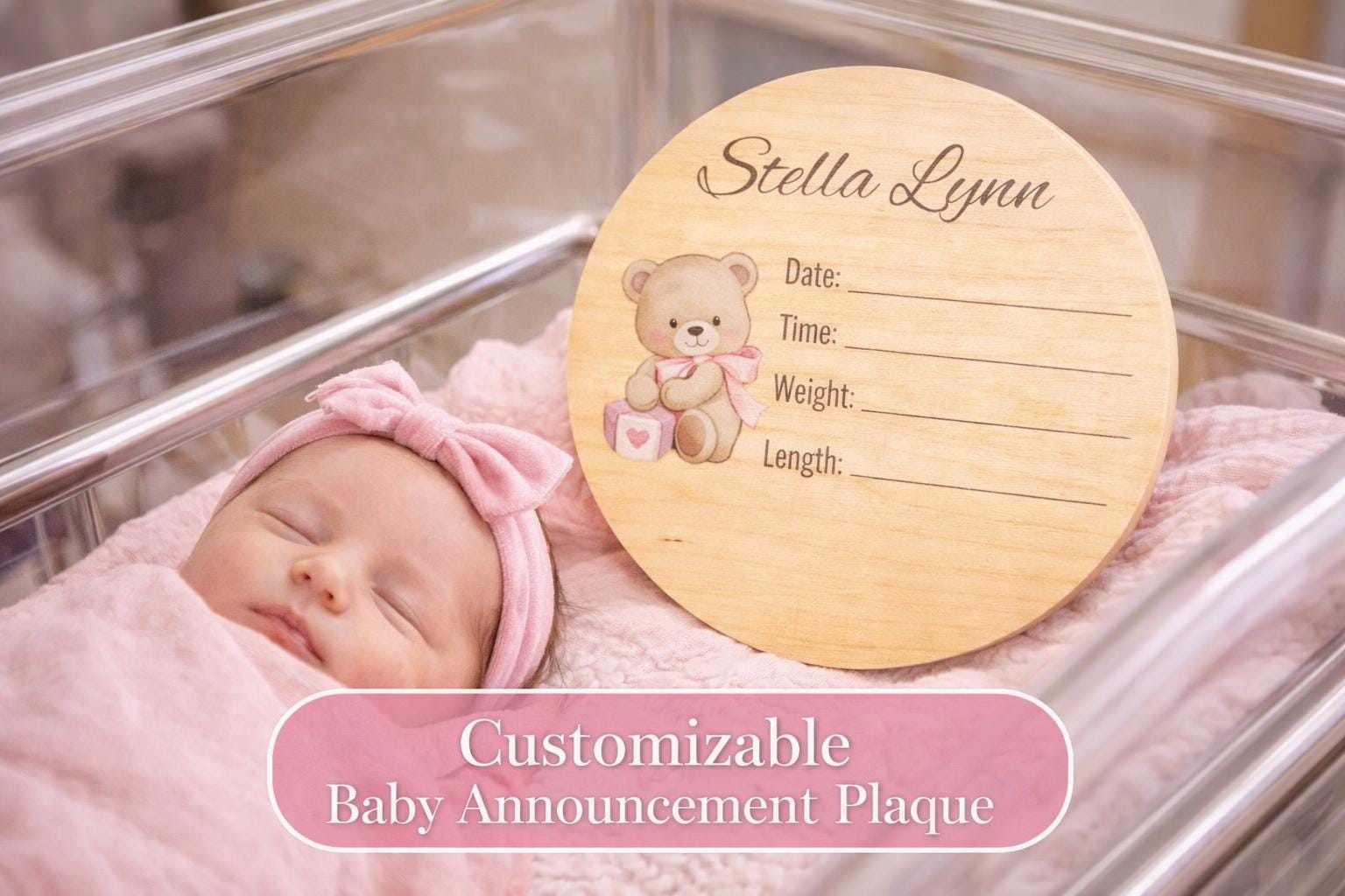 🤍 Personalized Wooden Baby Girl Birth Announcement Sign