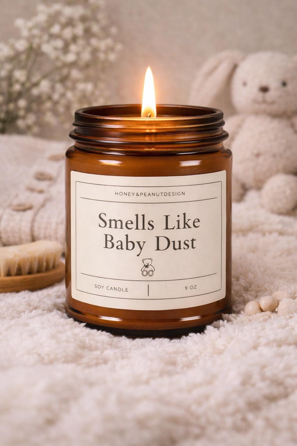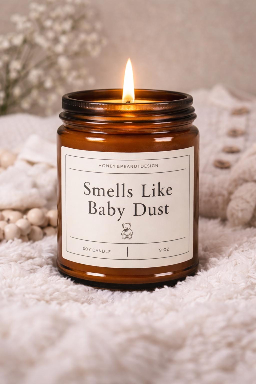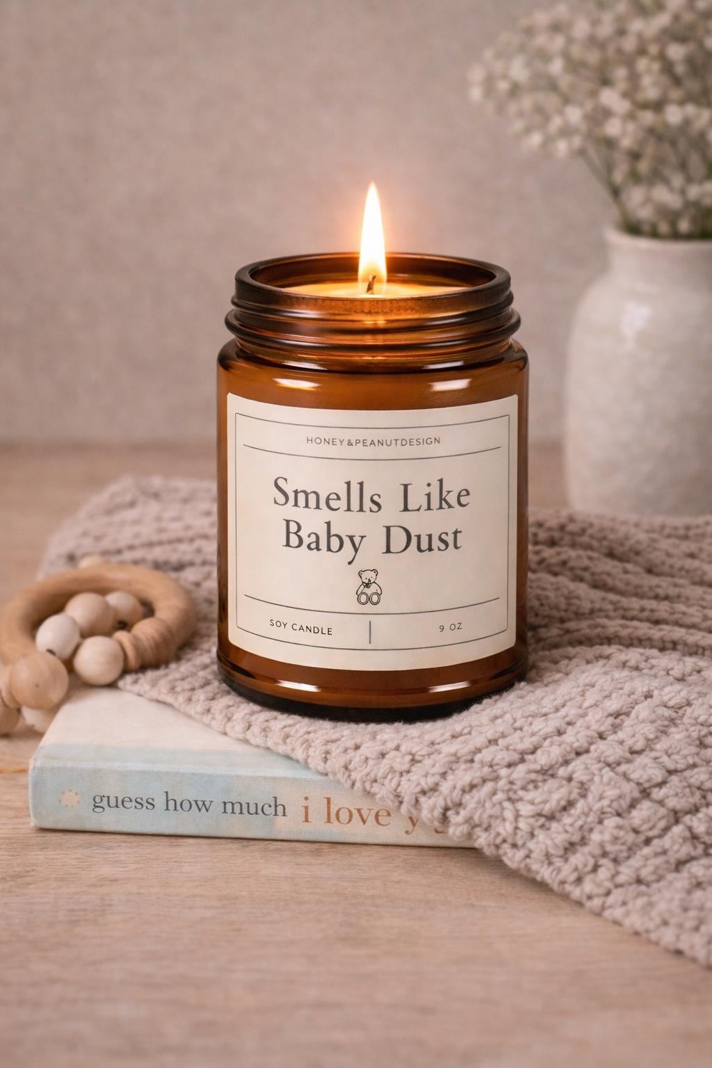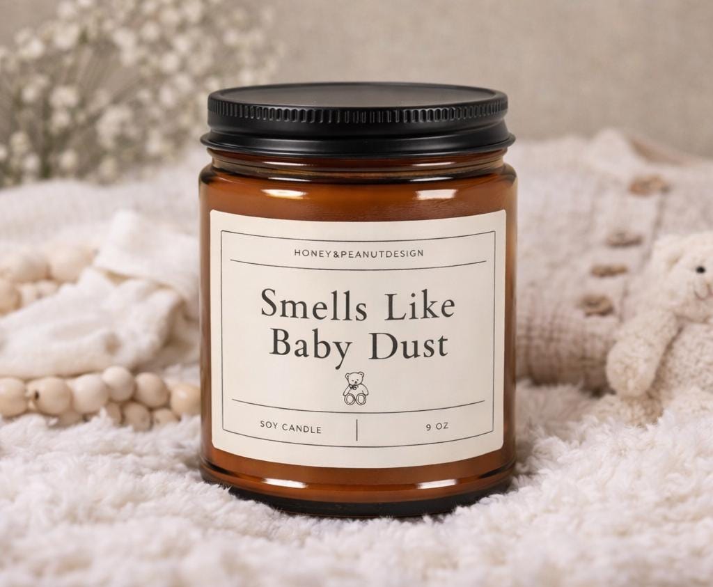 “Smells Like Baby Dust” is a cozy little nod to those early days — slow snuggles, tiny socks, and that sweet newborn calm. Subtle, comforting, and just a little playful, this candle blends seamlessly into your home while adding a gentle touch of humor only parents really understand.