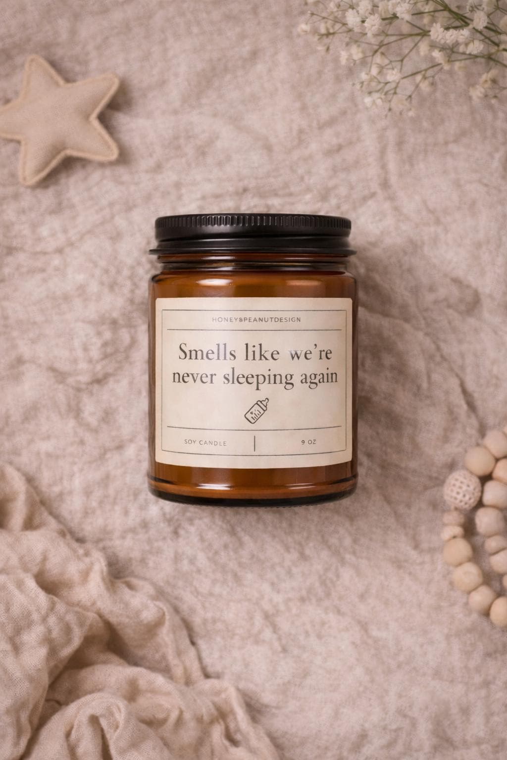 Minimal and nursery-friendly with just the right amount of humor, this candle makes the perfect gift for new parents, baby showers, or anyone deep in their sleep-deprived era.