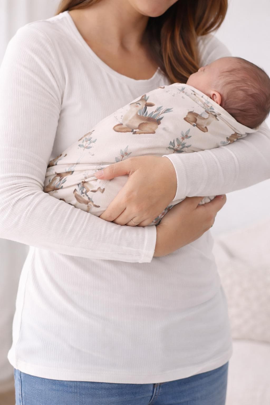 Neutral Deer Nursery | Soft Jersey Wrap | Cozy Everyday Essential