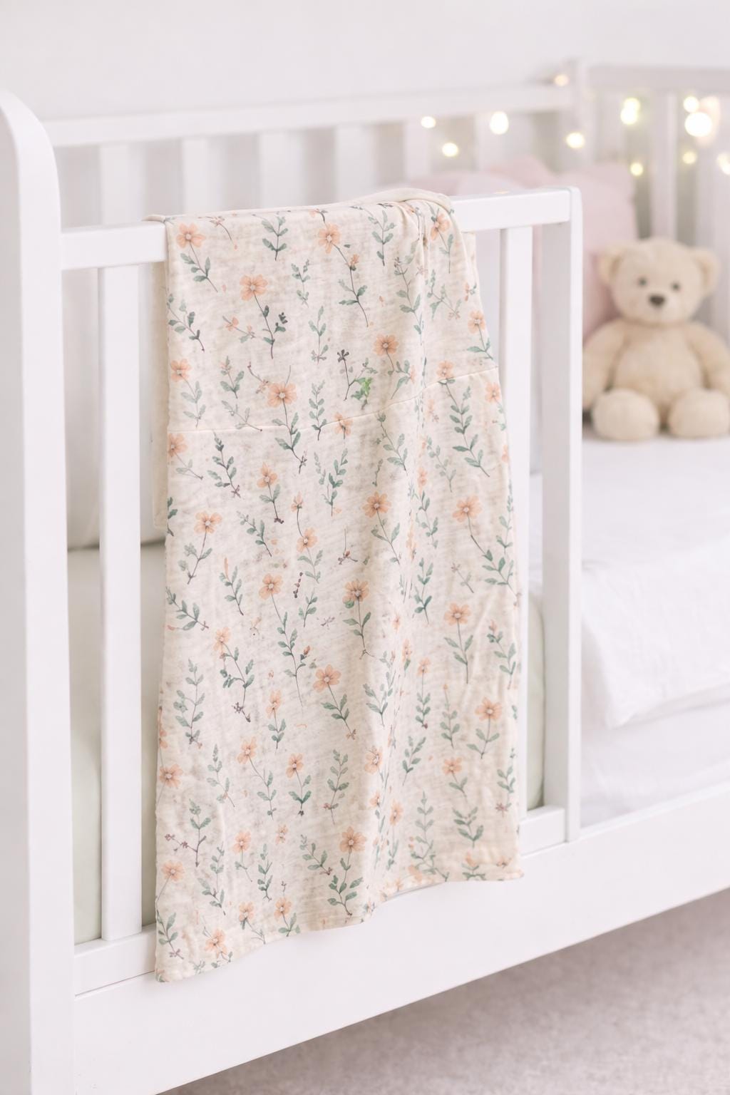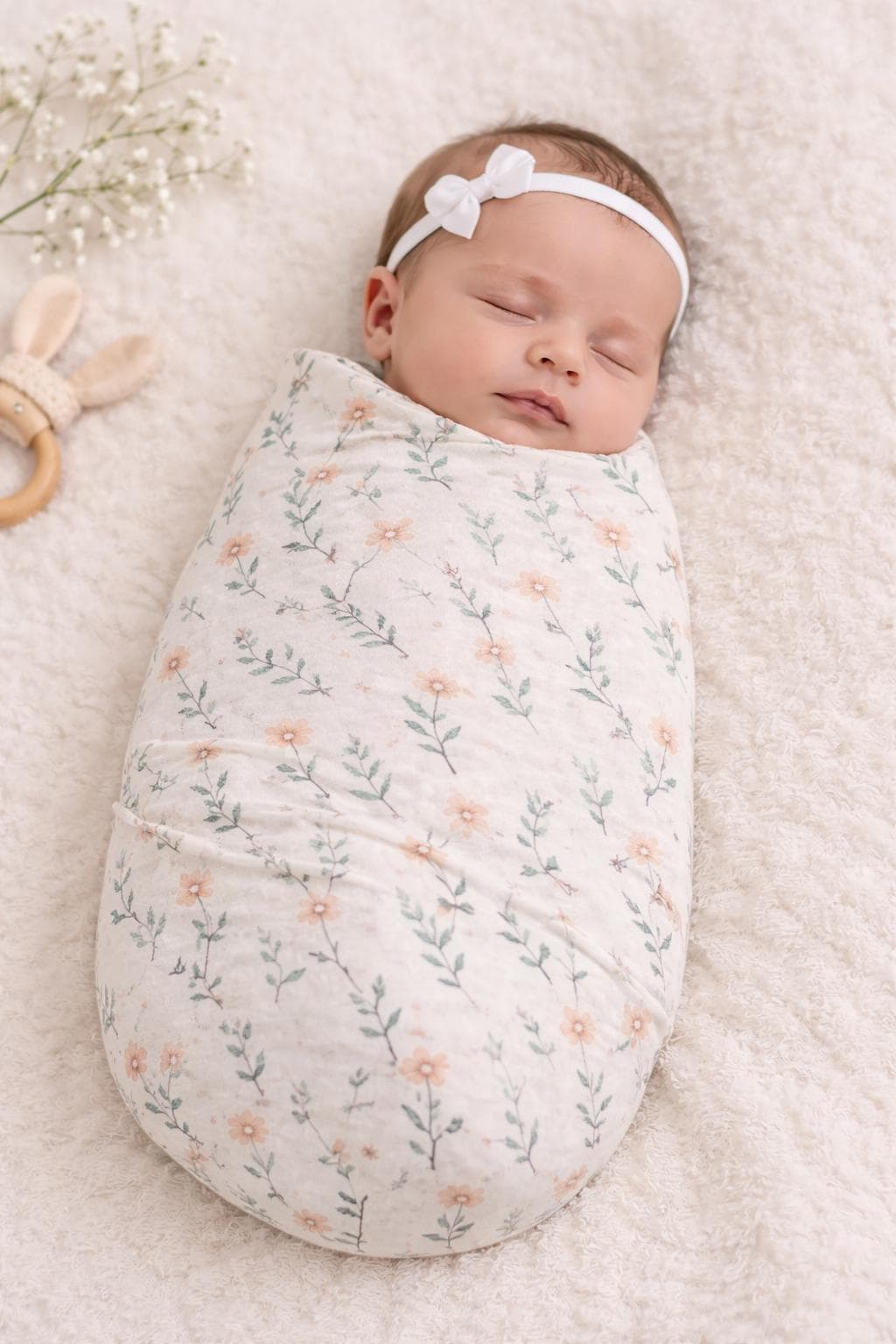 Our Peach Floral Spring Swaddle was designed to feel like those quiet, slow newborn days you wish you could bottle up forever.