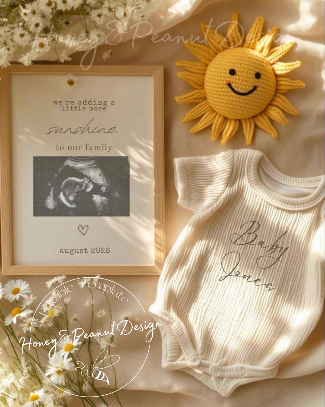 Announce your pregnancy with this soft, sentimental You Are My Sunshine pregnancy announcement — perfect for neutral lovers, summer babies, and heartfelt reveals.