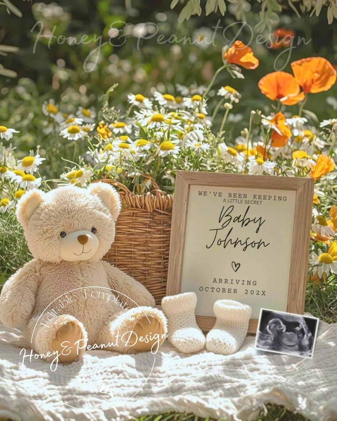 Designed with a warm, cozy aesthetic, this editable Canva template is ideal for sharing your joyful news on social media or printing as a keepsake.