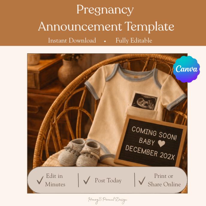 📥 INSTANT DOWNLOAD: Once your payment is confirmed, you’ll get immediate access to your Canva link via Etsy. Start editing your announcement in just minutes!