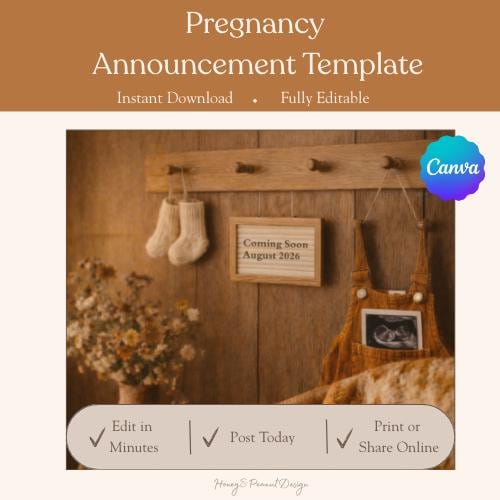 📥 INSTANT DOWNLOAD: Once your payment is confirmed, you’ll get immediate access to your Canva link via Etsy. Start editing your announcement in just minutes!