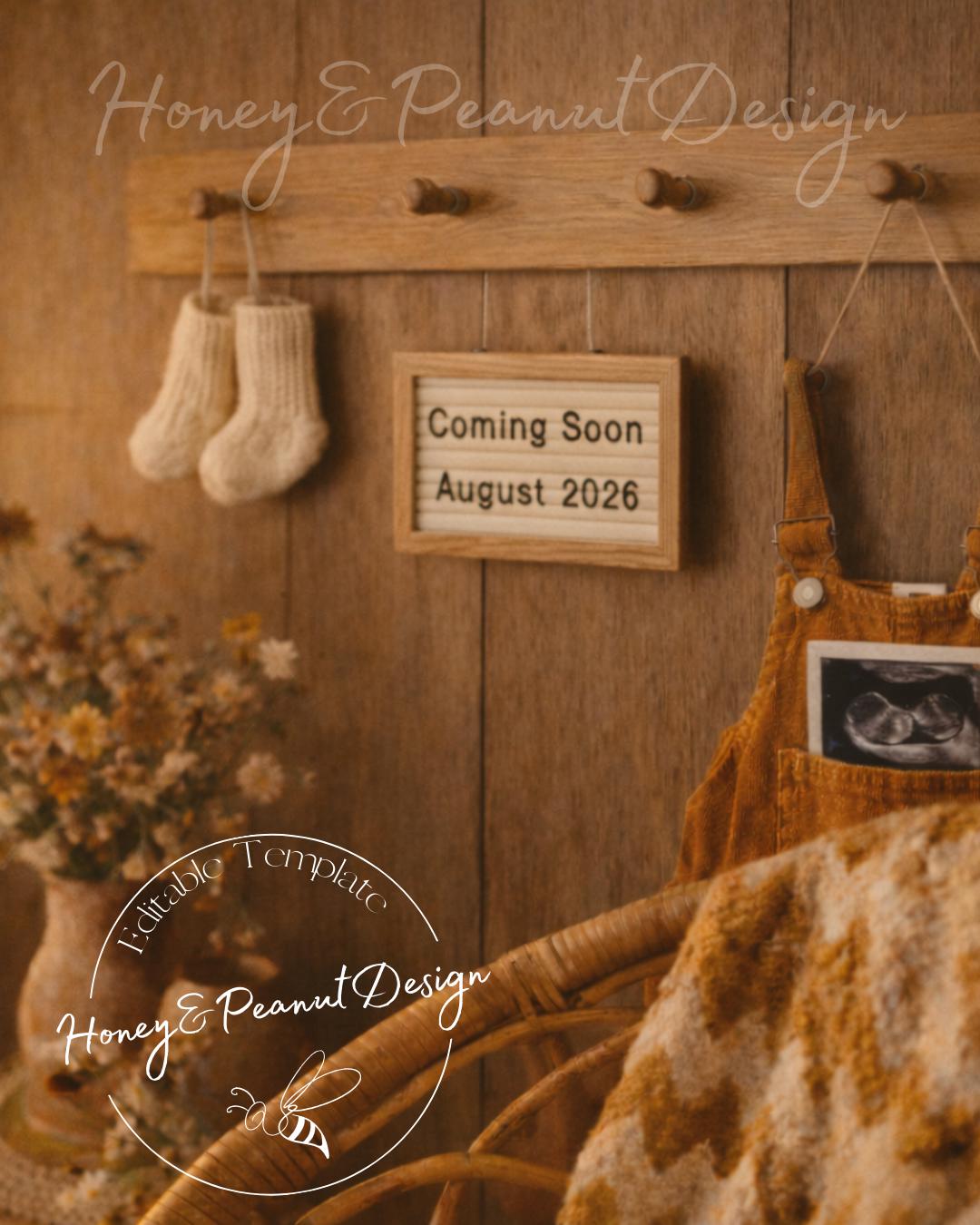 Soft wood tones, tiny hanging socks, and vintage overalls set the scene for one of life’s sweetest moments. Hanging Up Hope captures the quiet anticipation of preparing for baby — where every little detail feels meaningful and full of love.