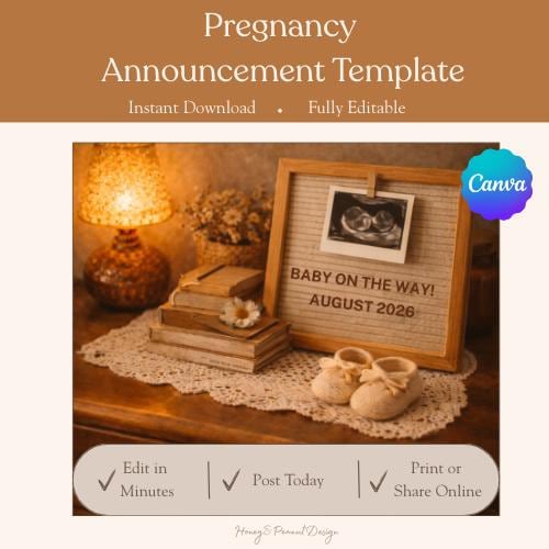 📥 INSTANT DOWNLOAD: Once your payment is confirmed, you’ll get immediate access to your Canva link via Etsy. Start editing your announcement in just minutes!