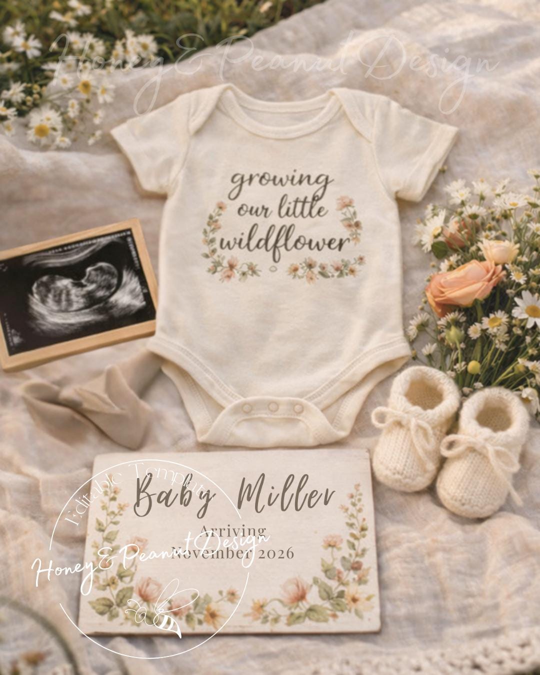 Little Wildflower Love | Digital Pregnancy Announcement | Editable Template