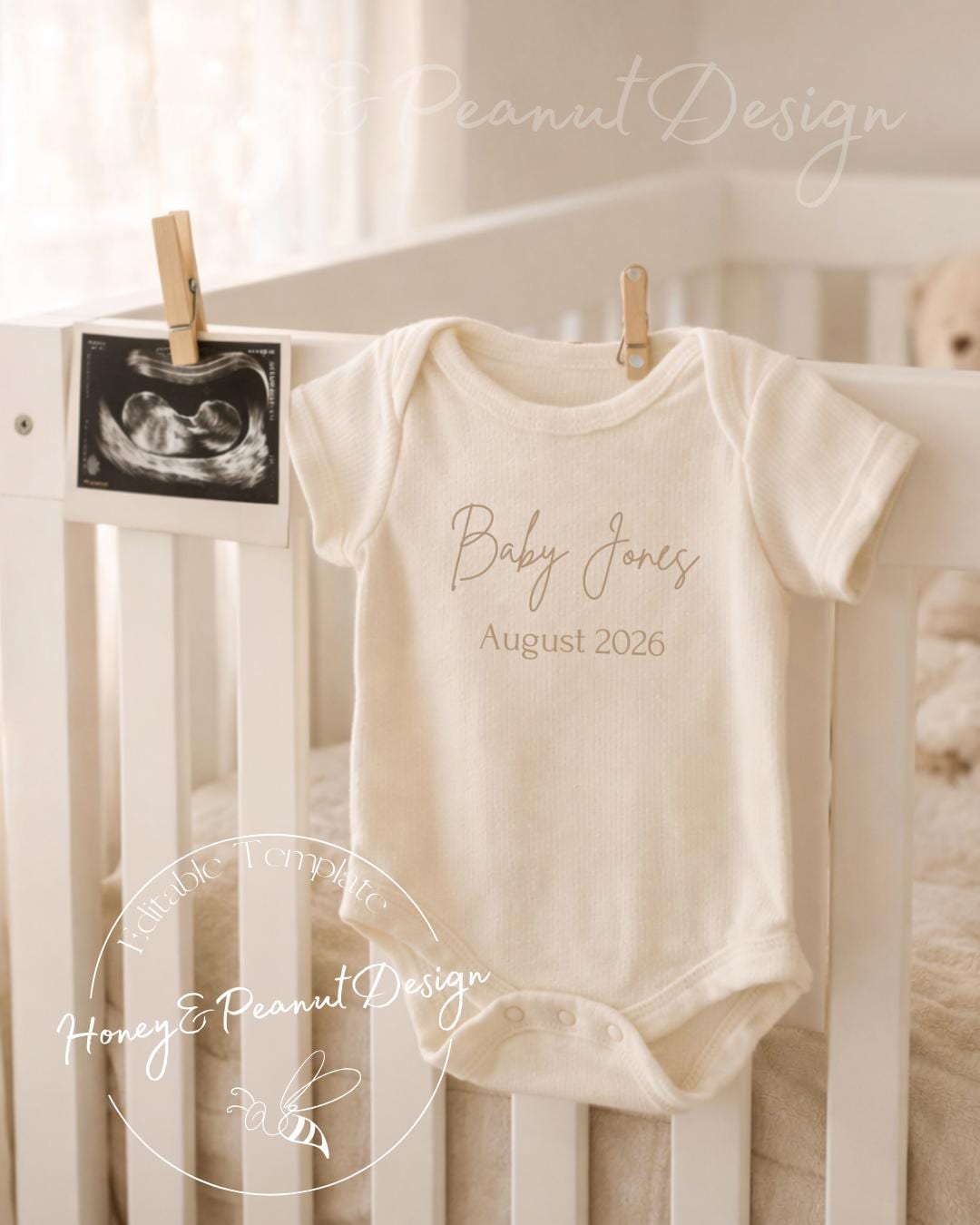 This is a fully editable digital template, allowing you to personalize the name and due date to make it uniquely yours. Once customized, simply download and share on social media, text to loved ones, or print for a keepsake memory.