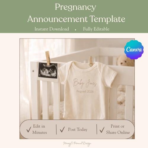 📥 INSTANT DOWNLOAD: Once your payment is confirmed, you’ll get immediate access to your Canva link via Etsy. Start editing your announcement in just minutes!