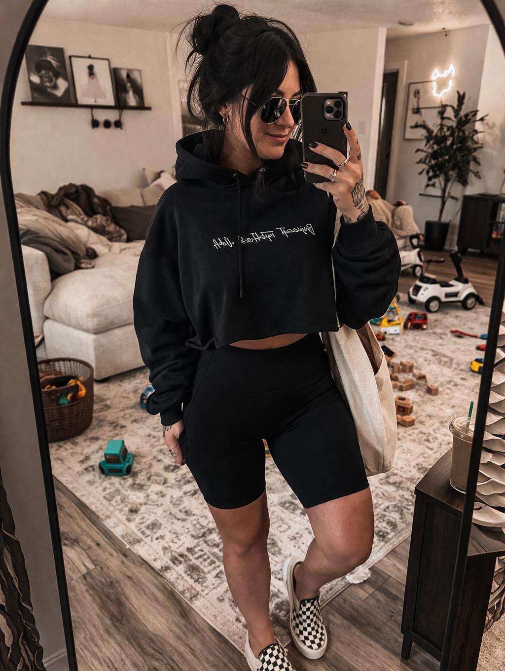 Pair it with leggings, biker shorts, or your favorite jeans for that effortless “cool mom” vibe.