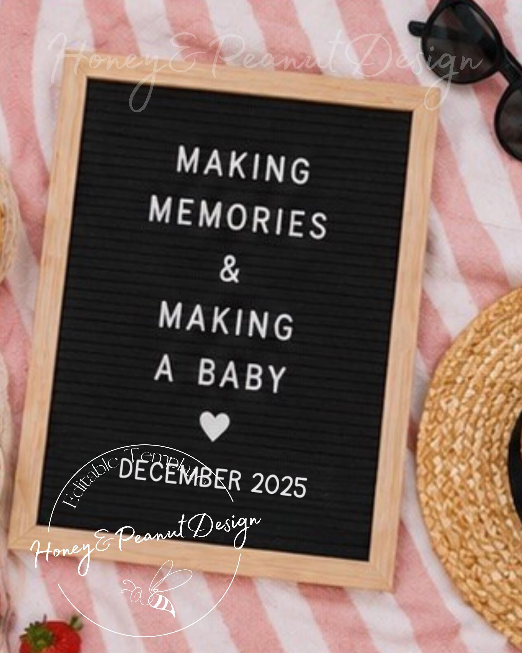 Celebrate your sweetest surprise with this playful and heartfelt pregnancy announcement. Featuring a modern letter board design with a fun, relatable message, this “Making Memories & Making a Baby” template is perfect for capturing your joy in a light, summery way.